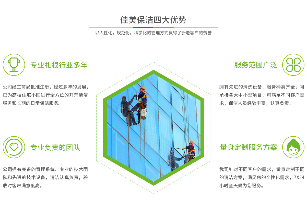 - 馬鞍山市佳美保潔服務(wù)有限公司是一家經(jīng)工商部門批準(zhǔn),具有法人資格專業(yè)清洗,馬鞍山保潔服務(wù)的公司,自創(chuàng)辦以來(lái),一直致力于企業(yè),家庭,賓館,學(xué)校,別墅,酒店,商廈,公共設(shè)施等場(chǎng)所提供科學(xué)的日常保潔和清潔保護(hù)的服務(wù)公司,有著豐富的管理服務(wù)和保潔經(jīng)驗(yàn)...